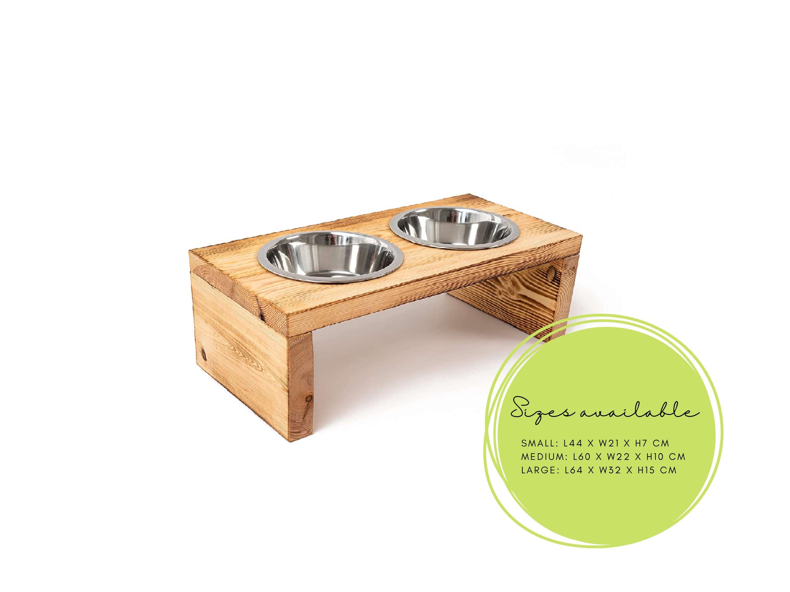 - Fits 2 removable stainless steel bowls (included). Custom orders for single or triple bowl stations are available.
